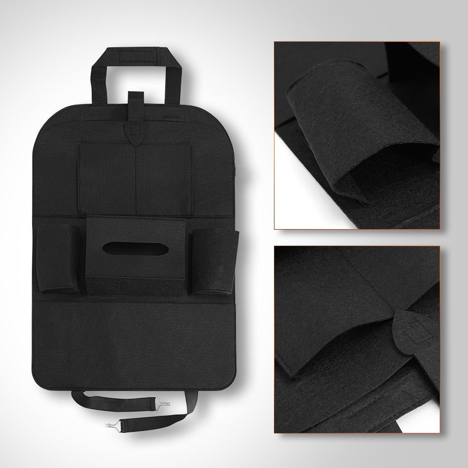 Features a large storage compartment to keep items in view and hold your tablet, magazines, CDs, mobile phones, bottles, drinks, tissue boxes, umbrellas, children's toys and more. Made of environmentally friendly materials, this gives the car seat protector a particularly long service life. Very easy to clean. Our car organiser is suitable for most cars and installation takes less than a minute. Sturdy and durable to ensure it can be attached to the seat to keep your belongings safe.